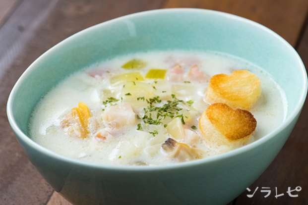 ハート型クルトンのクラムチャウダーのレシピ ソラレピ
